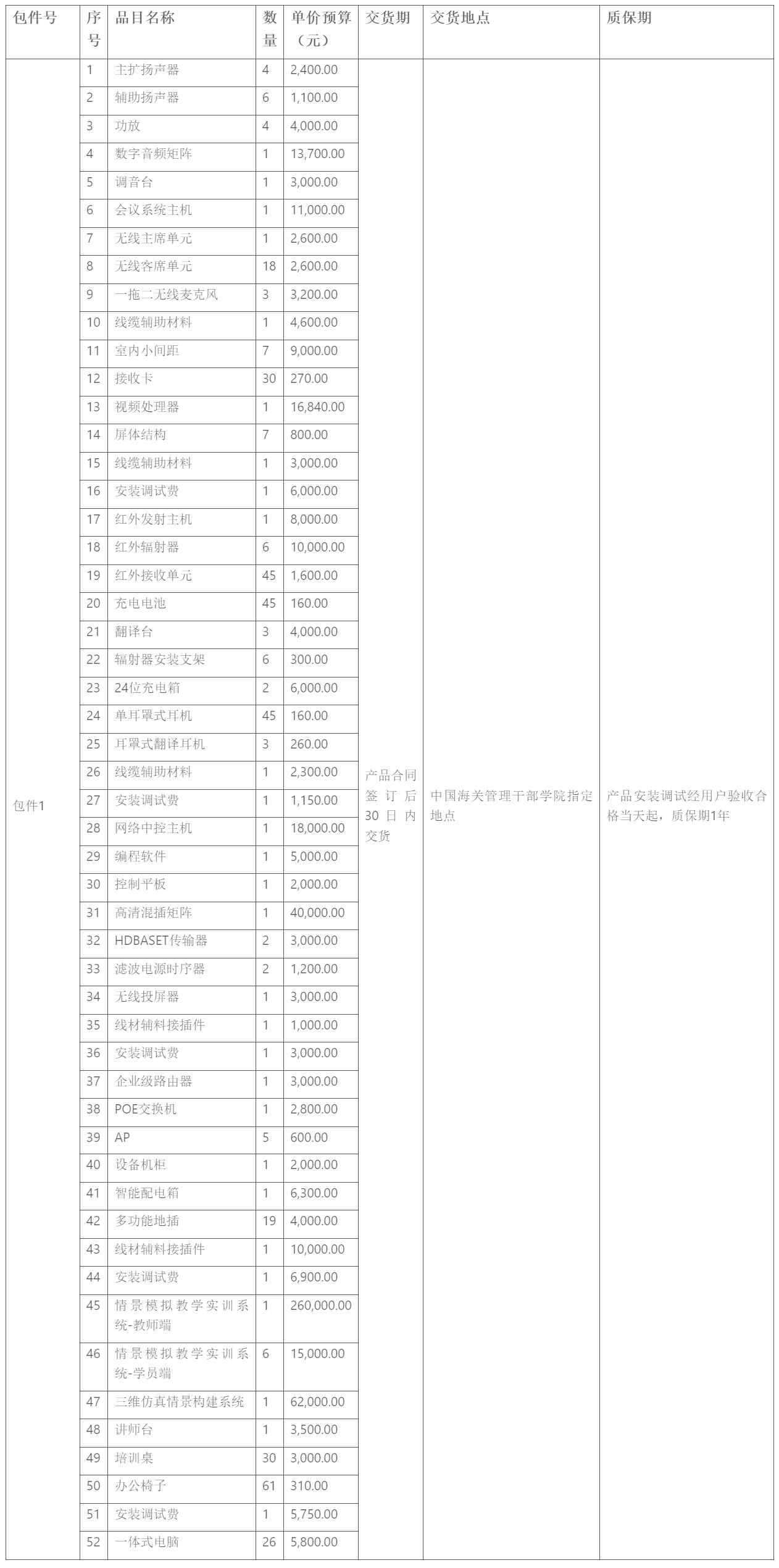 海关总署物资装备采购中心就“中国海关管理干部学院2023年中国海关辐射探测培训中心海关口岸监管环节反恐情景桌面推演实训室建设采购项目”进行国内公开招标采购,现邀请符合资格条件的投标人前来投标。本项目招标活动将严格落实节约能源、保护环境、扶持不发达地区和少数民族地区、促进中小企业发展、落实平等对待内外资企业等政府采购政策。
